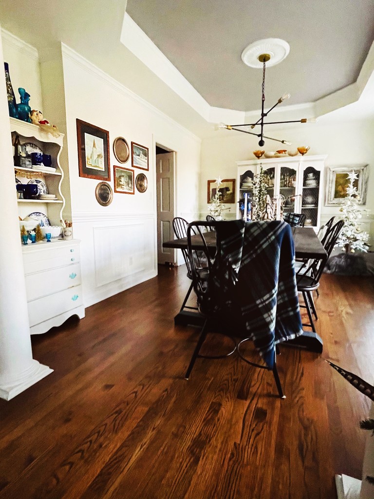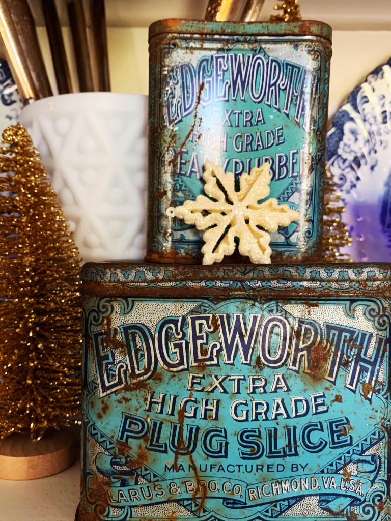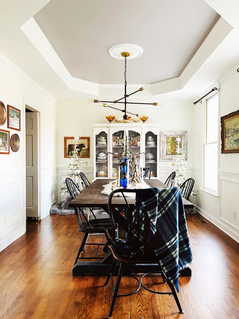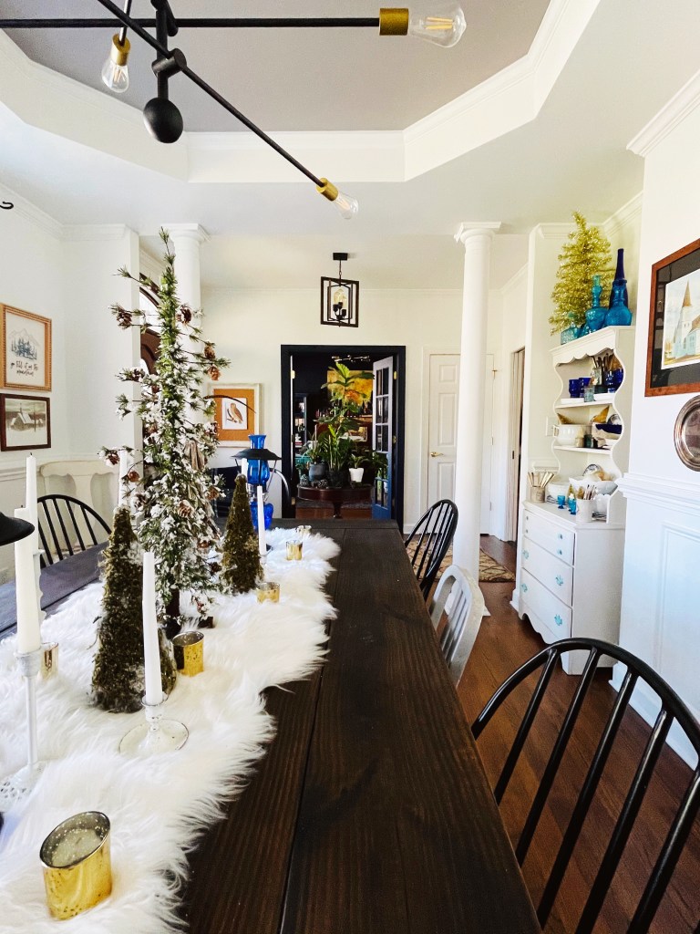 It all started with a trip to the Raleigh flea market in the early fall. I saw these winter church scenes and knew I wanted them to be the inspiration for my dining rom decor this Christmas/winter. I wanted to use deep blues, whites and gold.